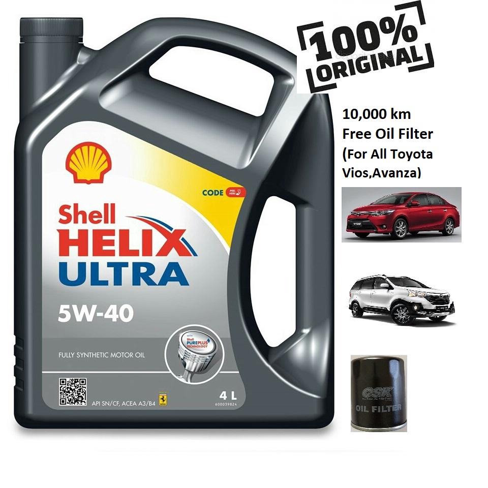 Shell Helix Ultra 5w 40 Fully Synthetic 100 Genuine Engine Oil 4l Free Oil Filter Toyota Vios Avanza Shopee Malaysia