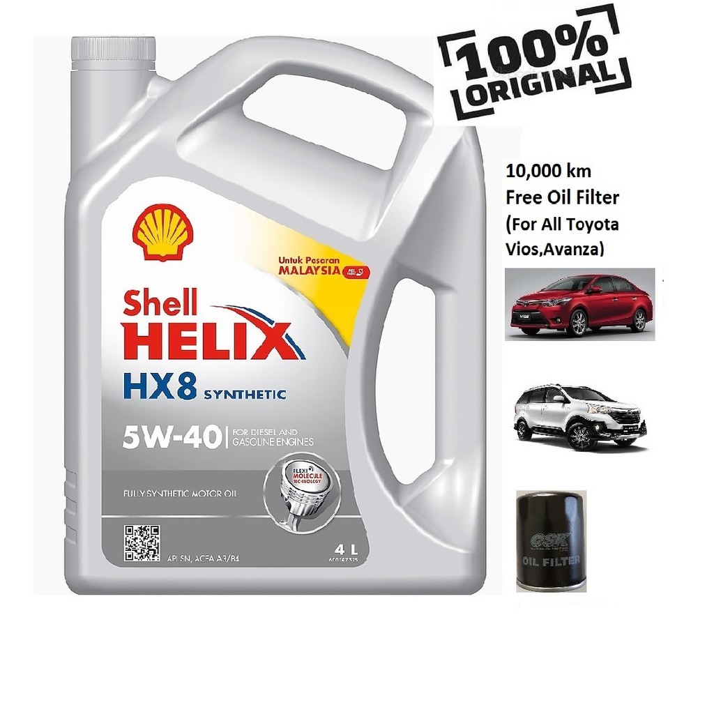 Shell Helix Hx8 5w 40 Fully Synthetic 100 Genuine Engine Oil 4l Free Oil Filter Toyota Vios Avanza Shopee Malaysia