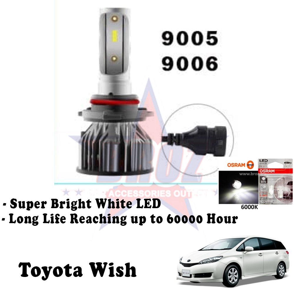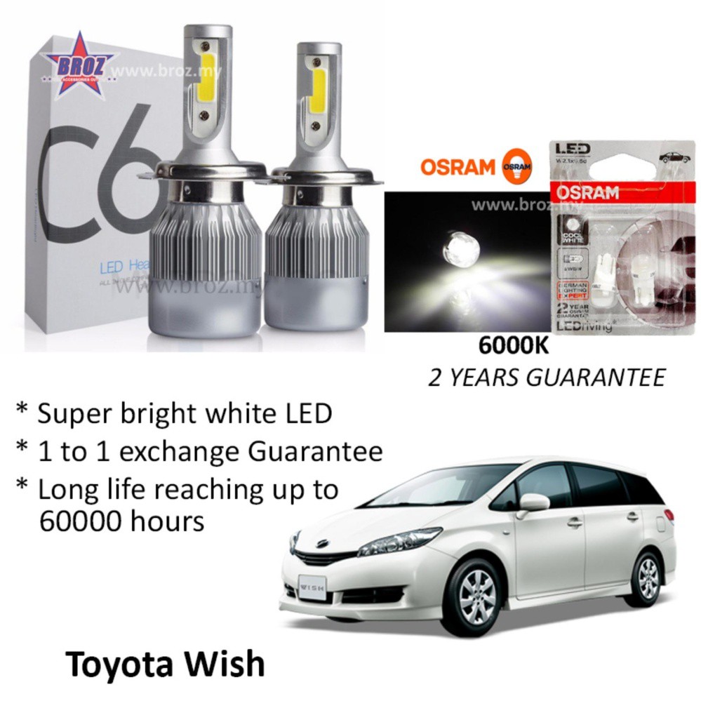 Toyota Wish Head Lamp C6 Led Auto Head Lamp 6500k White Osram T10 Led Shopee Malaysia